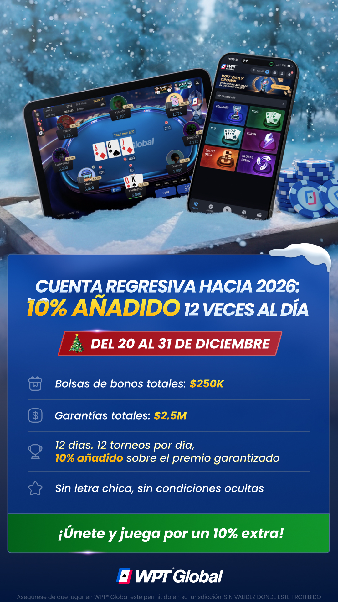 Ya seas un grinder de torneos o simplemente tengas ganas de jugar durante la temporada navideña, te damos 144 oportunidades de obtener más valor con los mismos buy-ins y cerrar 2025 a lo grande.