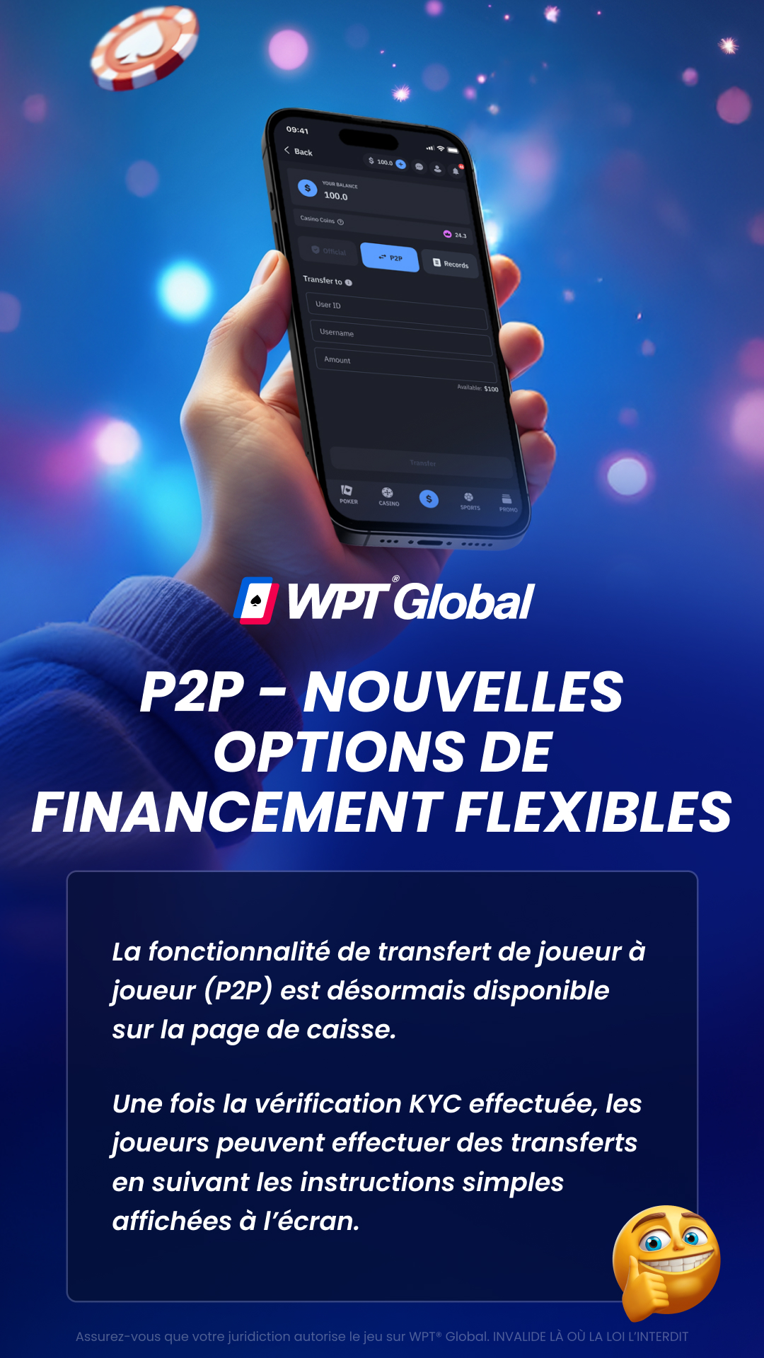 Obtenez un bonus de 100 % sur votre premier dépôt, jusqu’à 3 000 $ sur le site officiel du World Poker Tour