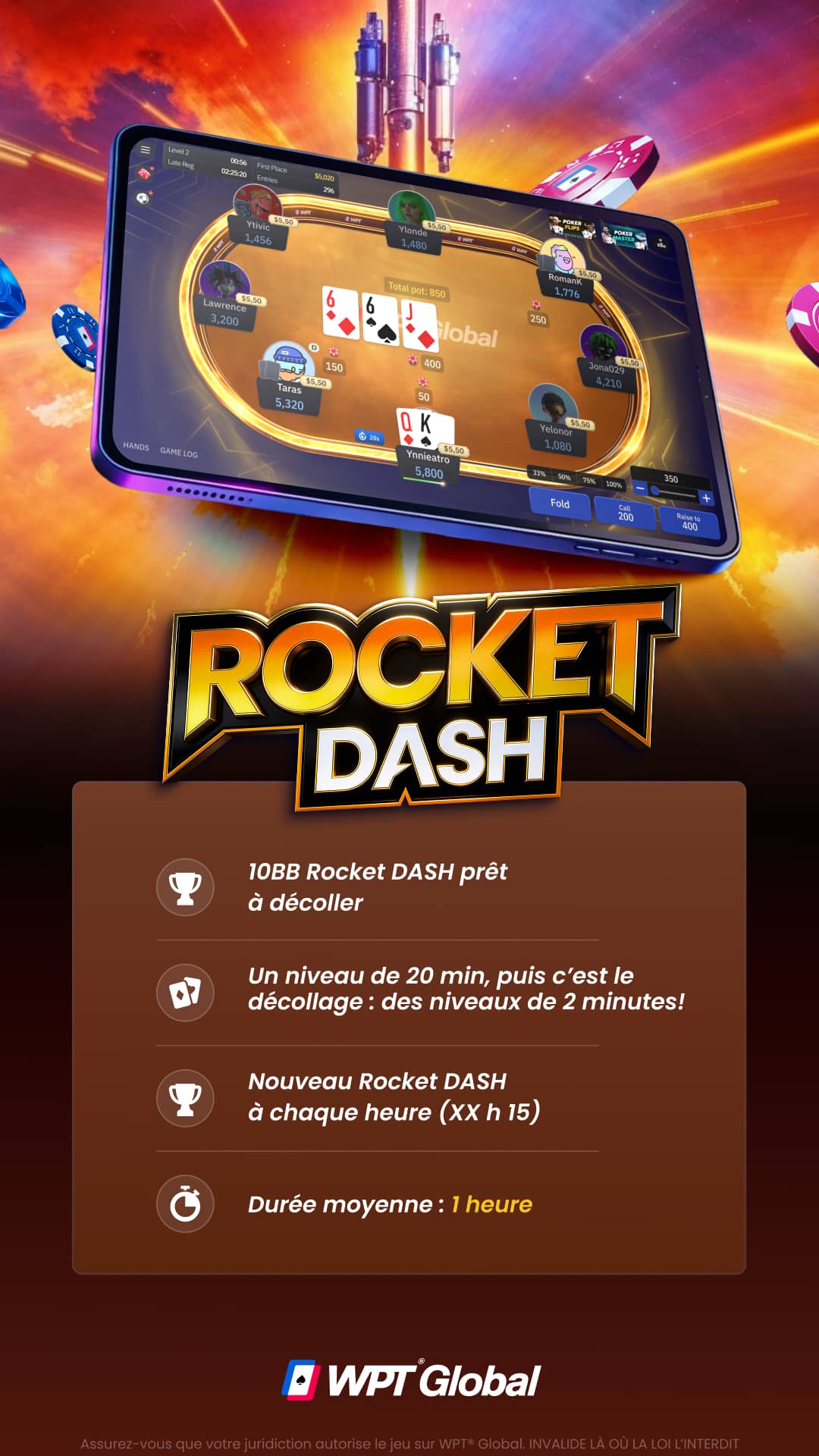 Obtenez un bonus de 100 % sur votre premier dépôt, jusqu’à 3 000 $ sur le site officiel du World Poker Tour