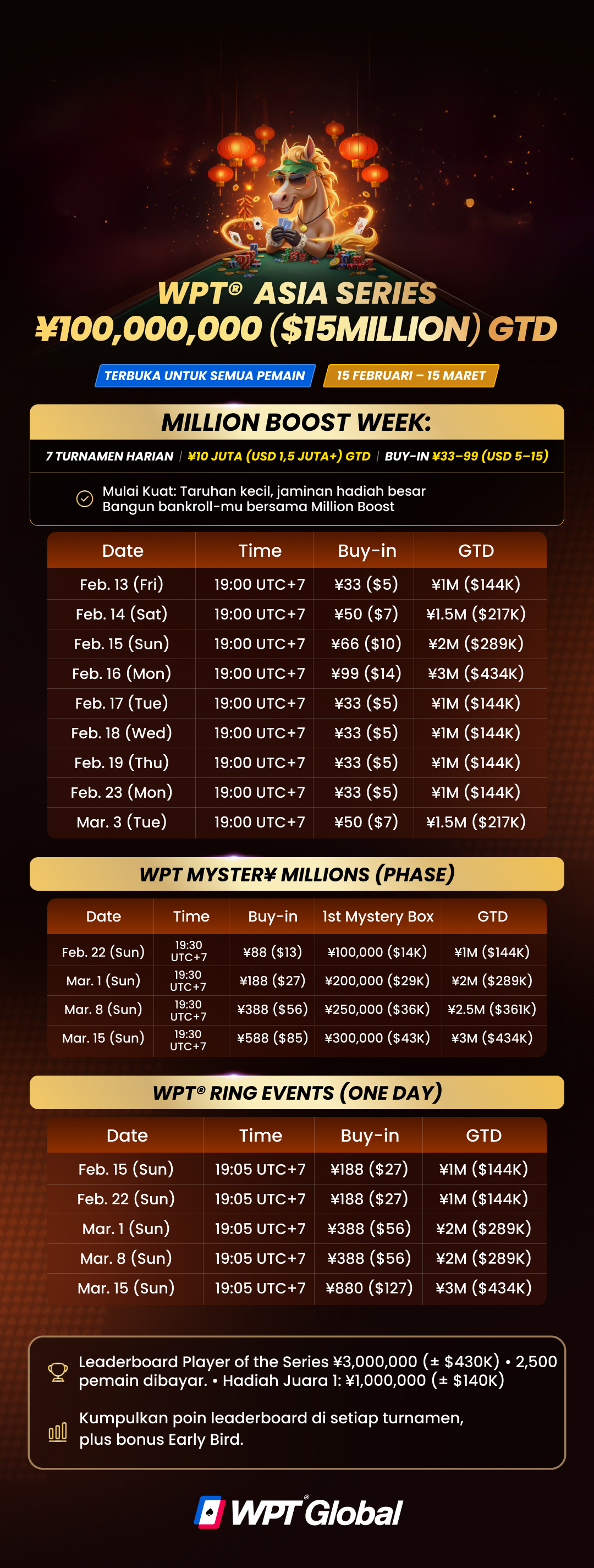 Kami membuka WPT® Asia Series dengan Million Boost Week (13–17 Feb):