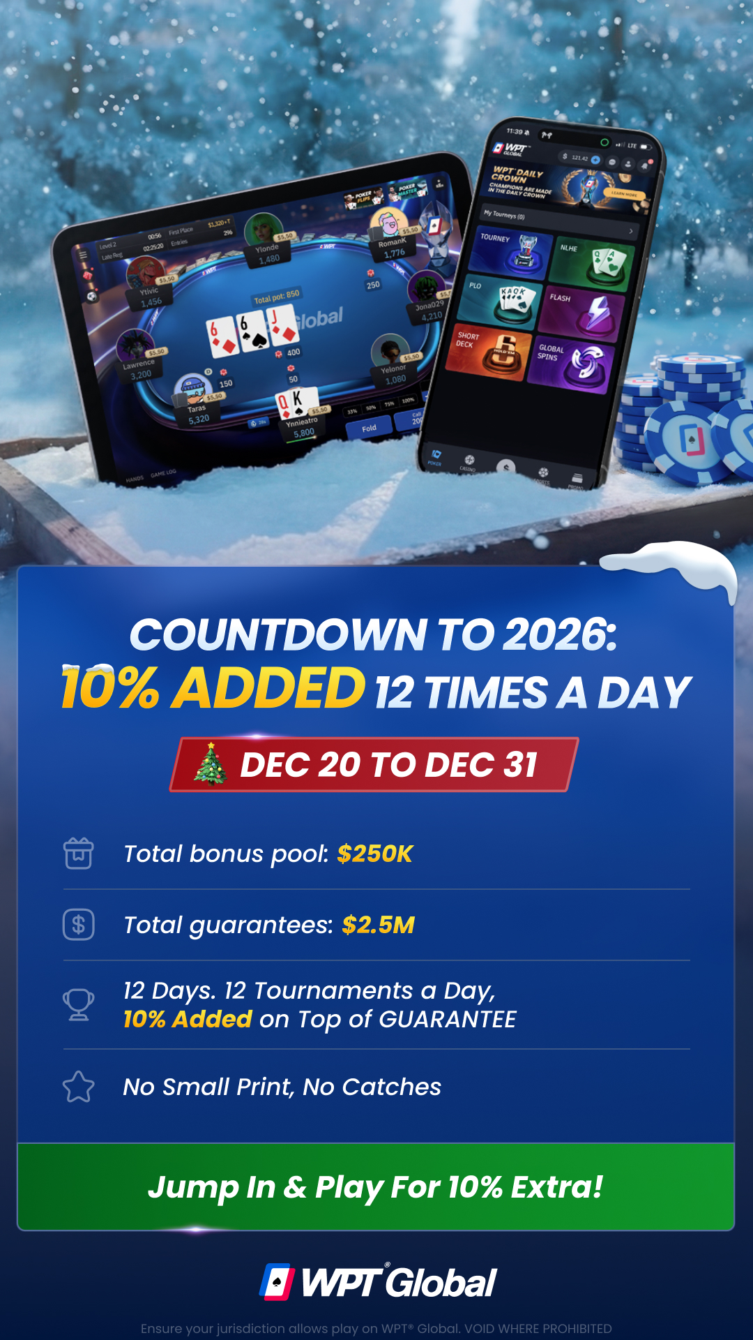 We’re ending the year in style, with 12 days featuring 12 prize-boosted tournaments, each having 10% ADDED to their prize pool.