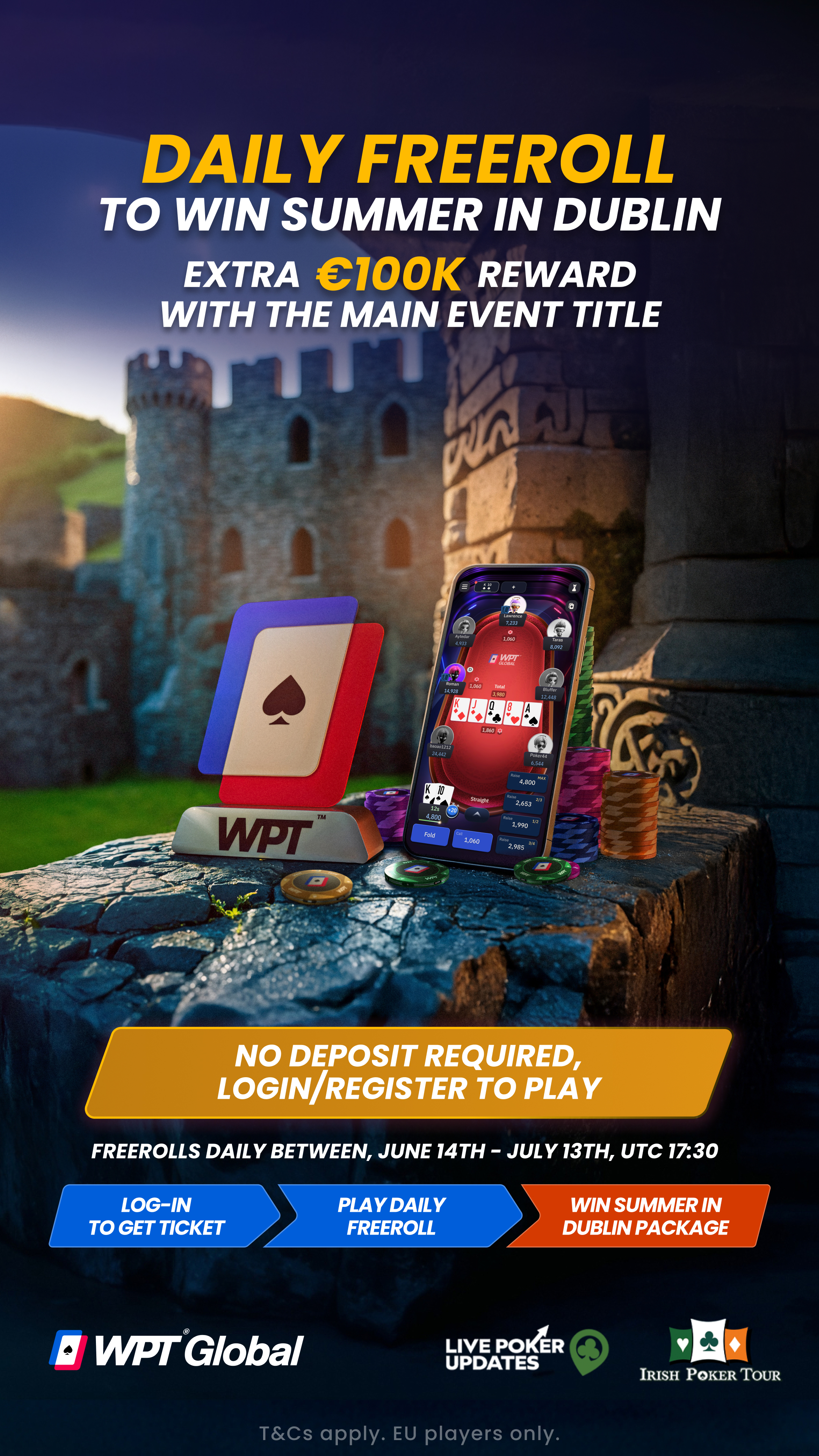 Log- in to your WPT® Global account to collect your Summer In Dublin Feeder Freeroll ticket every day.
