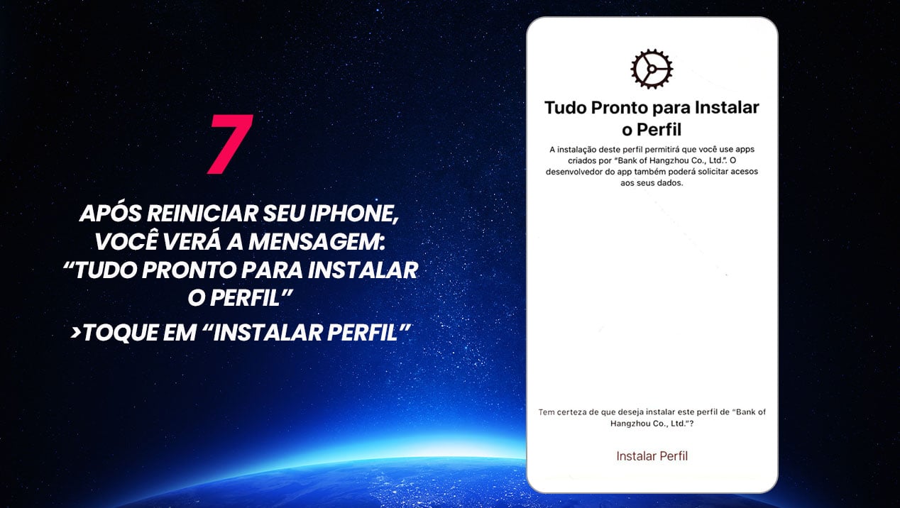 - Após reiniciar, toque em “Instalar Perfil” quando solicitado