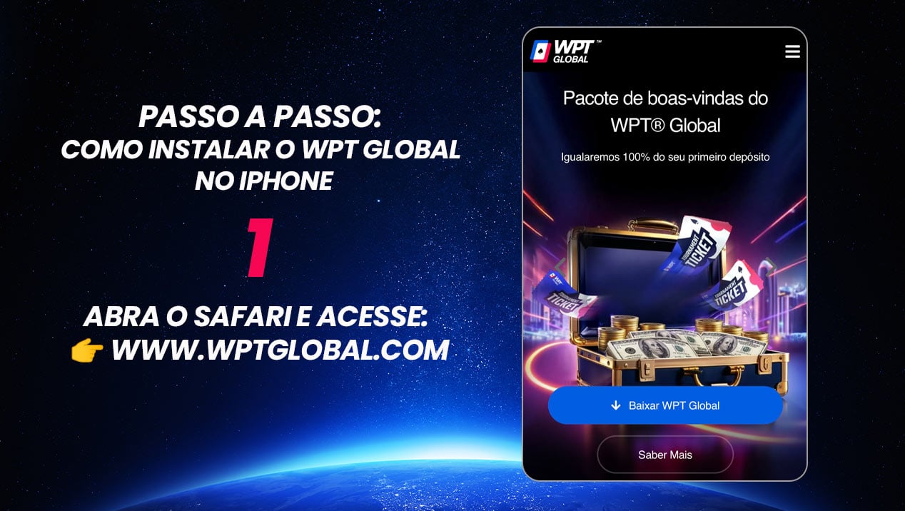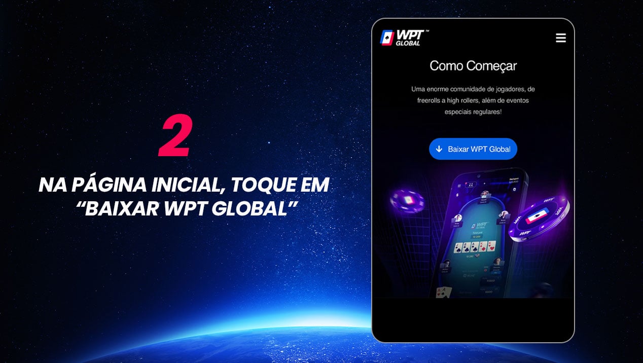 Na página inicial, toque no botão “Baixar WPT Global” para iOS.