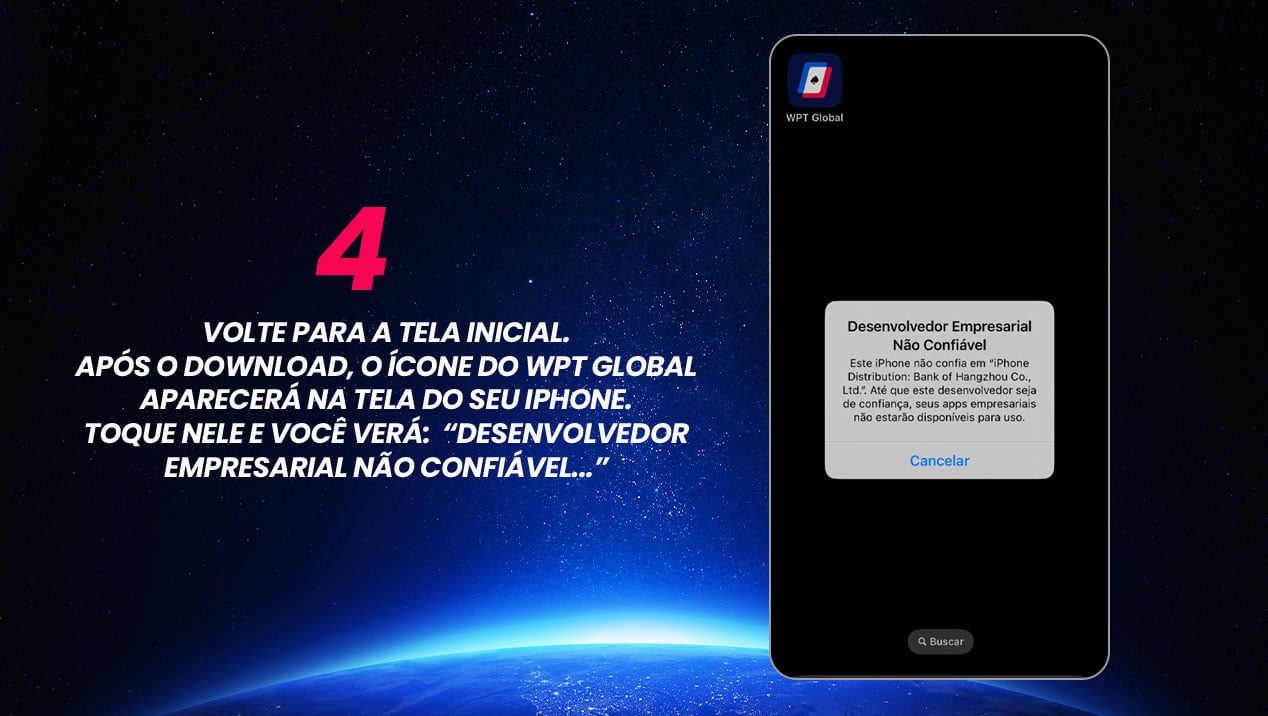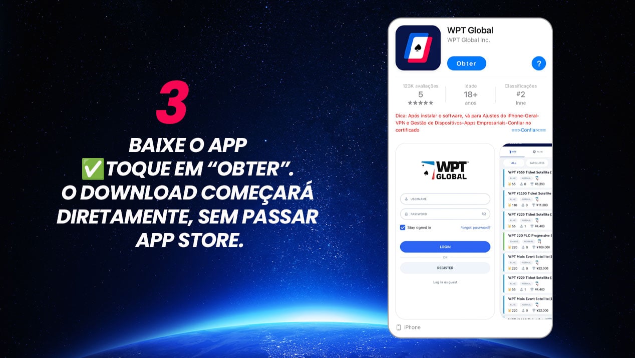 - Toque no botão “Baixar WPT Global para iOS”