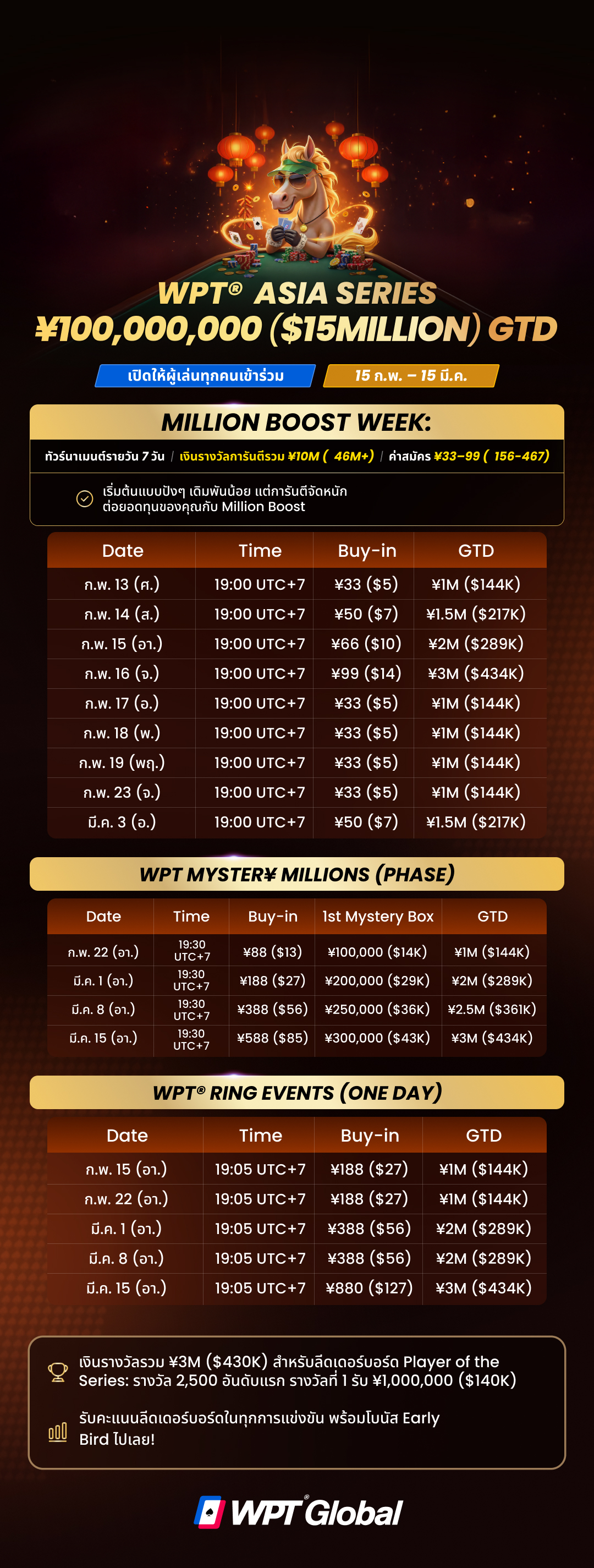 เปิดฉาก WPT® Asia Series ด้วย Million Boost Week (13–17 ก.พ.):