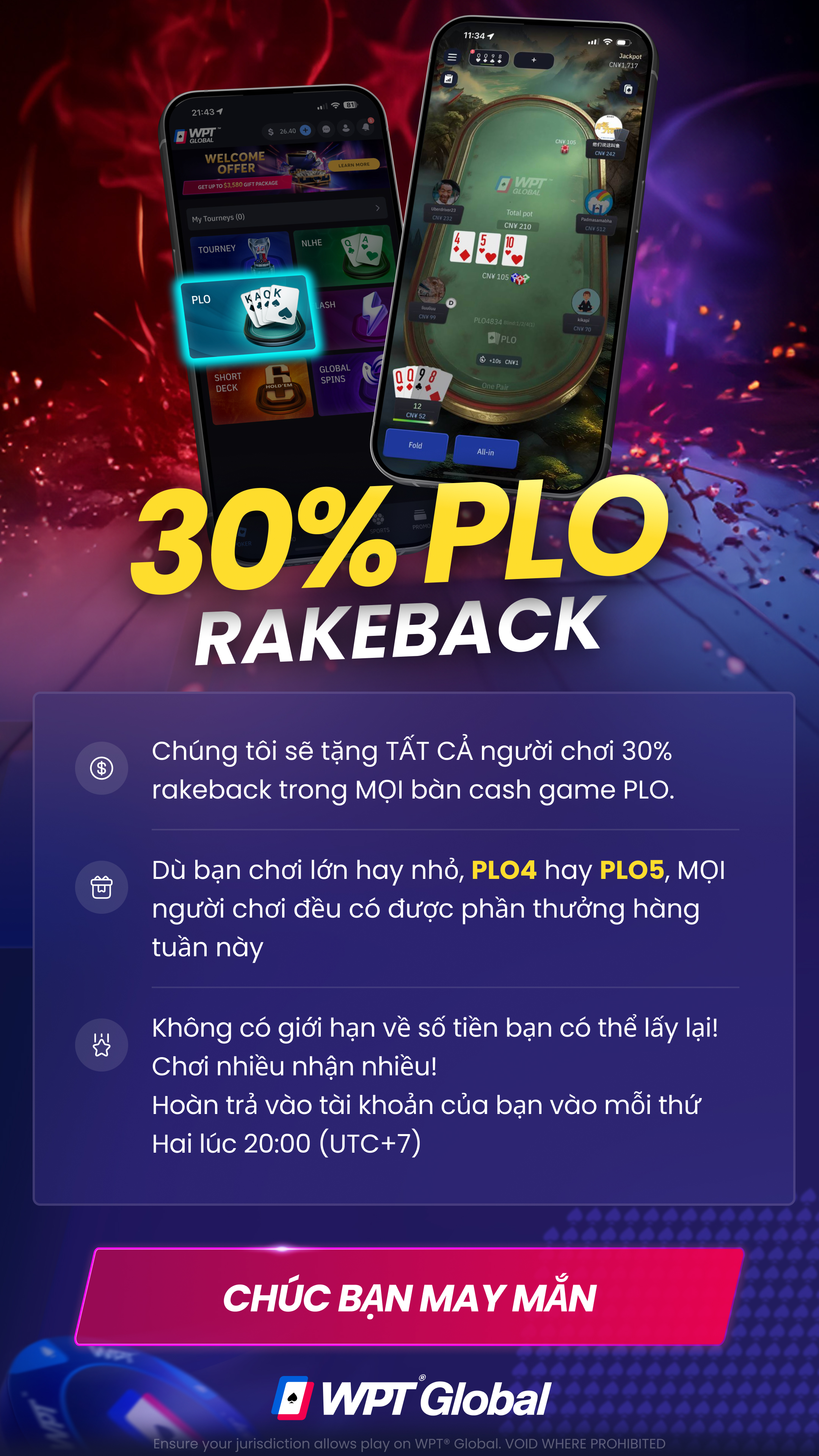 Hoàn rake 30% cực hấp dẫn cho PLO