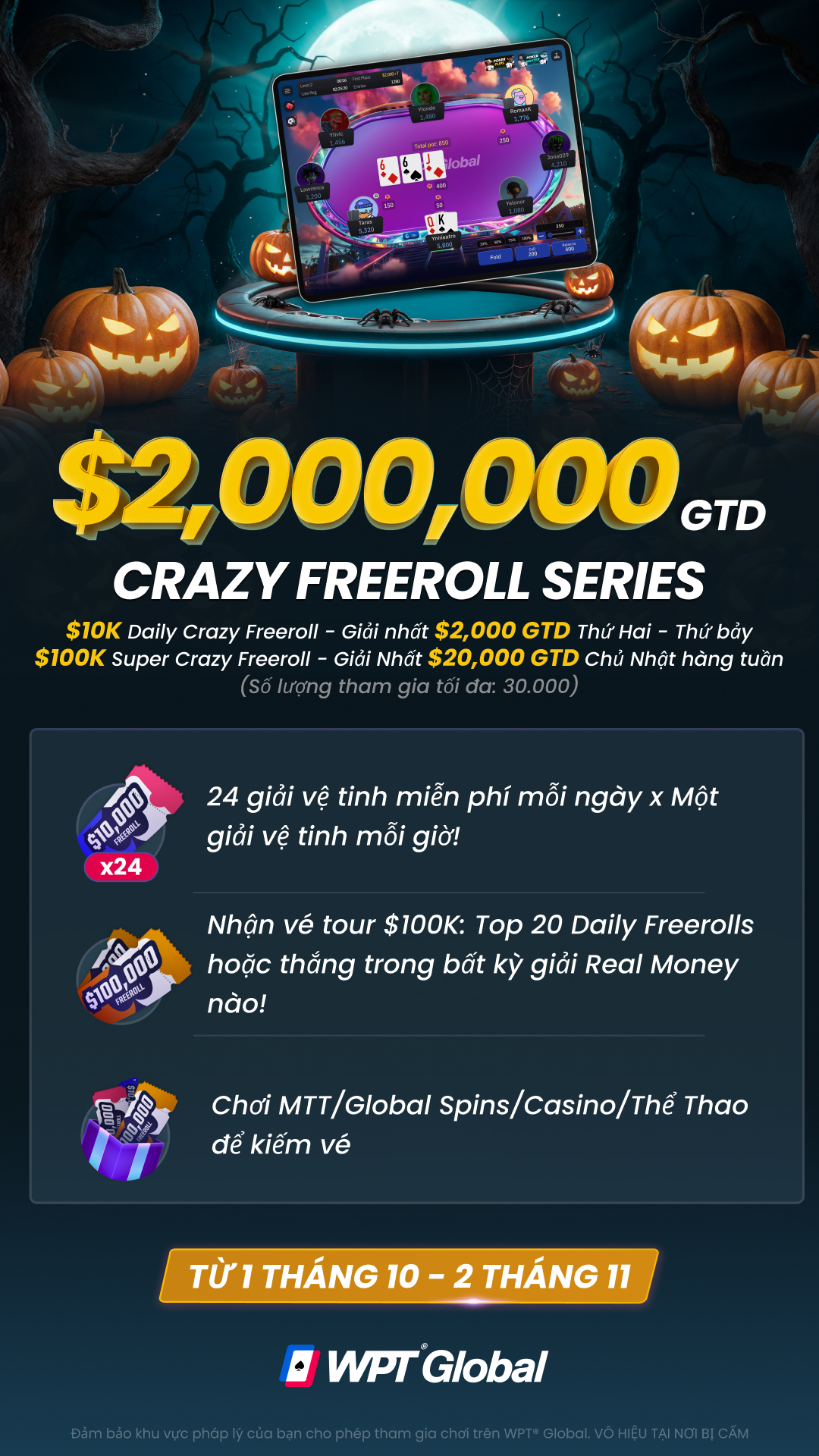 WPT® Global tổ chức giải Crazy Freeroll, trao tặng $2,000,000 cho người chơi!