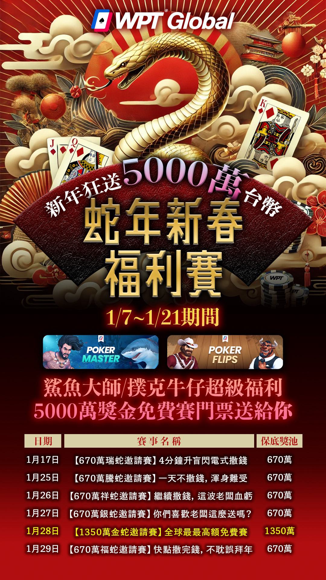 蛇年春節福利免費系列賽(總獎金保證 1200萬)